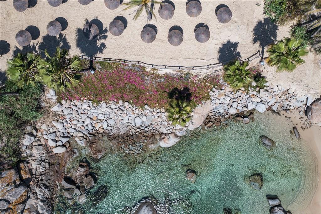 Součástí vyhražené hotelové části Cottage je relaxační bazén v zahradě a menší "sportovní" pláž vzdálená cca 150 m v malém zálivu, v její blízkosti jsou 3 další pláže vč. přírodní písečné pláže Tellis Village ohraničené kameny a pak ještě 2 pláže ve vzdálenější části resortu. Všechny jsou vybavené lehátky a slunečníky (do vyčerpání; osušky na vratnou kauci). V hlavní sezóně jezdí několikrát denně gumový člun přímo z pláže Cottage a Borgo Cala Moresca na pláž Lido di Orri (5 minut, € 10/ osoba/ zpáteční) nebo lze využít službu linkového autobusu se zastávkou před resortem. Větší pláž Orri se zázemím a barem s částí vyhrazenou jen pro hosty resortu (slunečníky a lehátka zdarma, do vyčerpání kapacity) - tato služba může být na konci sezóny již omezená nebo zcela zrušena. |