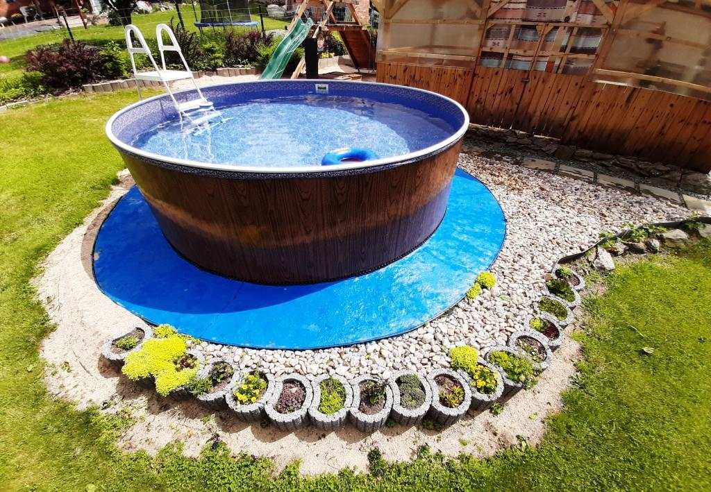 bazén venkovní (prům. 3,6 m, hl. 1,1 m, s filtrací, písková