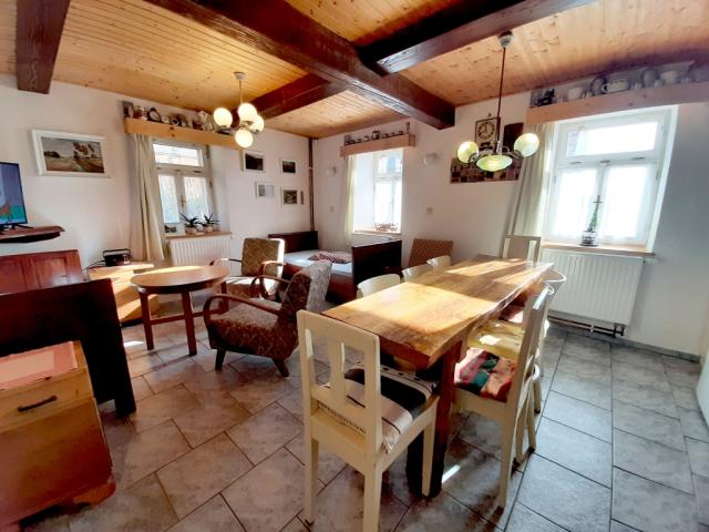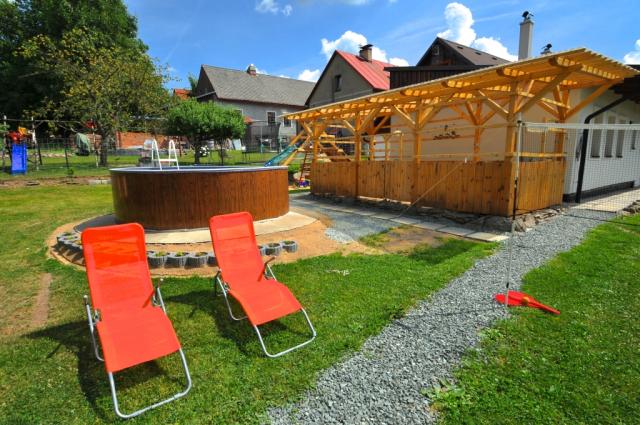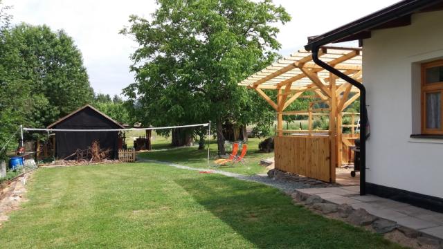 Velmi pěkná roubenka s bazénem, infrasaunou a prostorným, oploceným pozemkem. Chalupa se nachází na červeně značené turistické trase Jiráskova cesta a na naučné stezce skřítka Frymbulína. Ve vzdálenosti 500 m se nachází zřícenina hradu Frymburk a po 2 km dorazíte na rozhlednu Šibeník. Z plošiny rozhledny, která je ve výšce 32 m nad zemí, lze vidět Broumovské stěny, Velkou Deštnou, Kunětickou horu, Kaňk, vodní nádrž Rozkoš, nebo Krkonoše. |