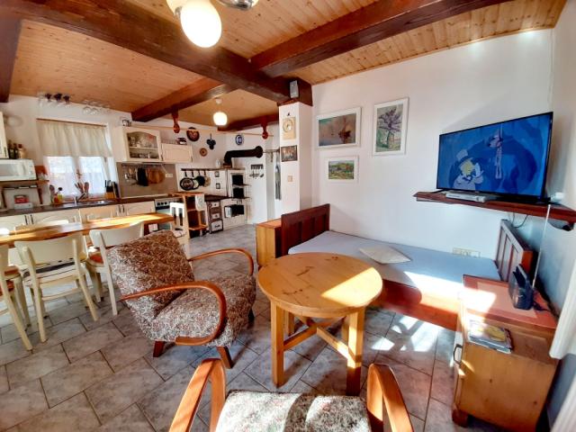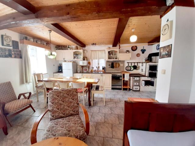 v ceně, vaření: sklokeramický sporák s elektrickou troubou, počet plotýnek: 4, typ vytápění: elektrika + tuhá paliva, (kachlová kamna, elektrokotel, ústřední topení s akumulační nádrží.), Ohřev vody: elektrický bojler (objem: 125 l), možnost kouření: ne |