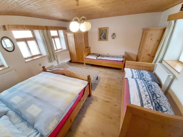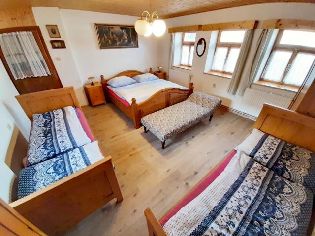 Manželská lůžka jsou o rozměru 2 m x 1,8 m, samostatná lůžka+patrová postel rozměr 2 m x 0,8 m, přistýlka 1,8 m x 0,9 m |