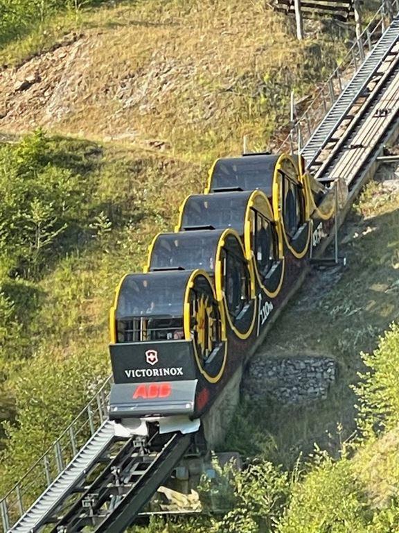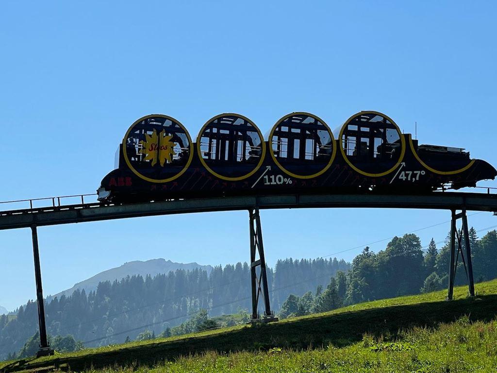 kolem 18. hod.) směrem Praha, Rozvadov, Mnichov a Bregenz. Den 2. : Ráno přijedeme do Švýcarska k Vierwaldstättskému jezeru. Nejstrmější lanovkou na světě vyjedeme do horského střediska Stoos, kam nesmí auta. Dostaneme se tak na dohled království majestátní hory Mythen. Tato nová lanovka je zcela unikátní, neboť originální vagónky ve tvaru sudů zajišťují, že cestující zůstanou ve vzpřímené poloze i při stoupání pod úhlem až 47,7 stupňů. Ze Stoosu mohou zájemci pokračovat sedačkovou lanovkou až na dechberoucí jezerní a ledovcové vyhlídky na Fronalpstocku (1 922 m n. m.). Z těchto výšek, kde zrovna budou kvést koberce květů, si